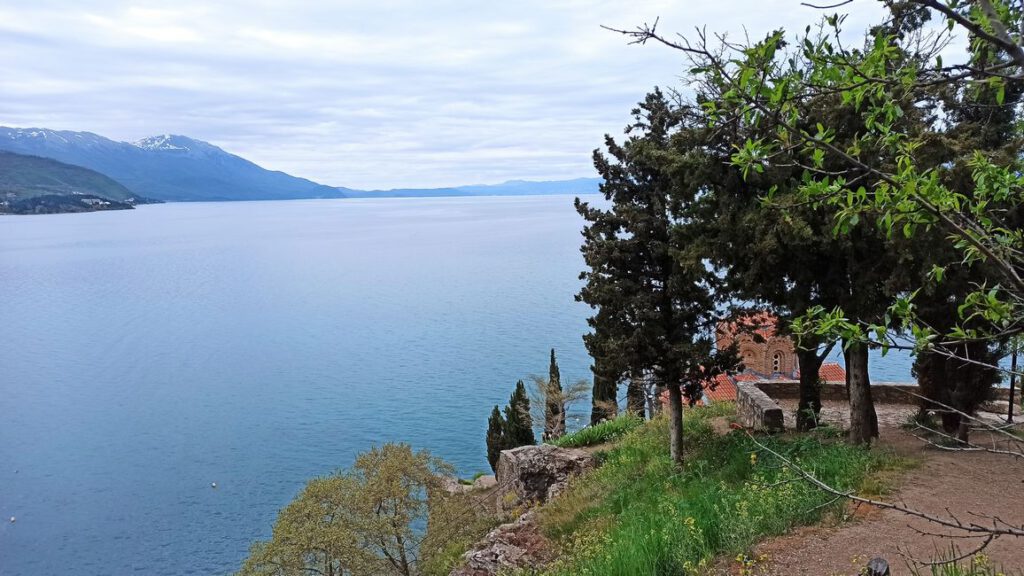 Зі скелі ми побачили чисте бірюзове Охридське озеро, а потім ще й здійснили по ньому прогулянку на кораблику.