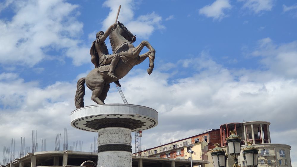 А в центрі міста Скоп’є встановлено пам’ятник Олександру Македонському, який називається «Вершник на коні», який не можна називати Македонським!?