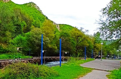 Каньйон створений річкою Тріска. У ХХ ст. річку перегородили дамбою і утворилось озеро, поруч побудували церкву св.Андрія. Корабликом вздовж каньйону відправились до печери Врело. Побачили два підземних озера, сталактити і сталагміти.